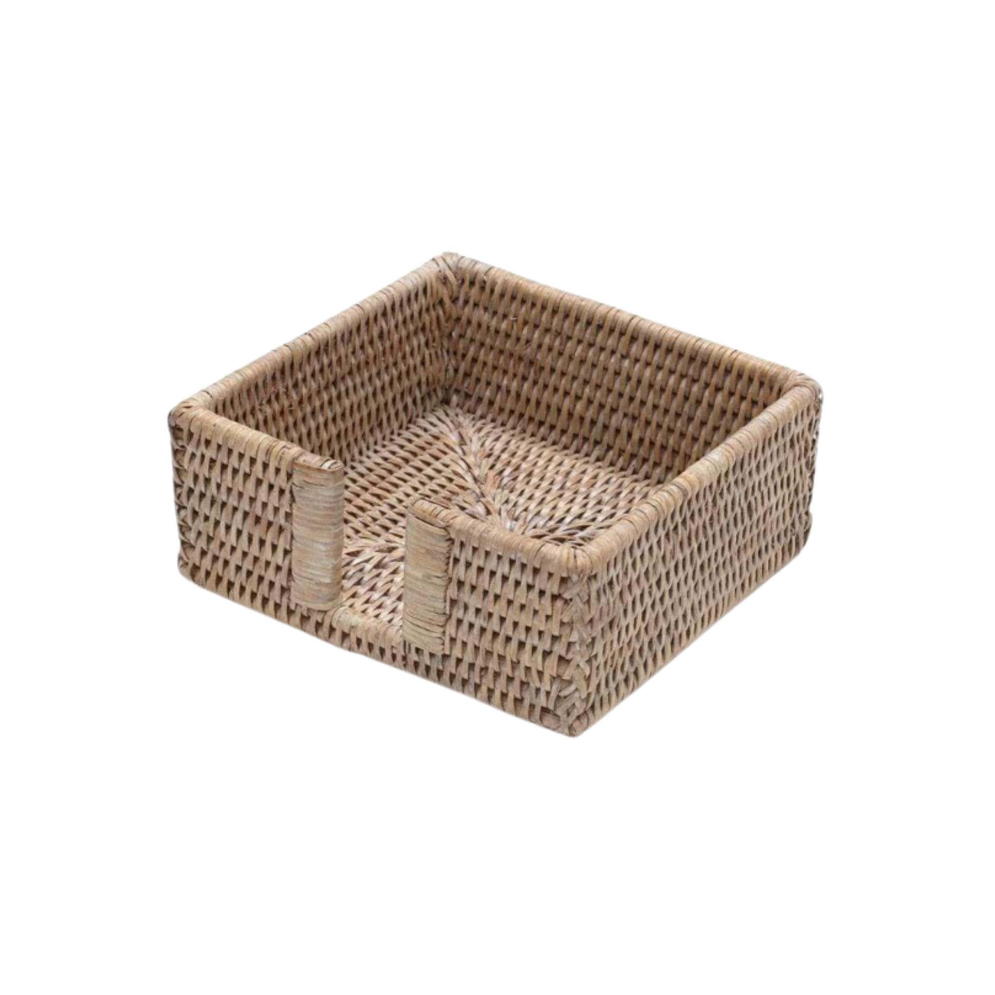 Rattan napkin holder to fit square cocktail napkins, white natural finish