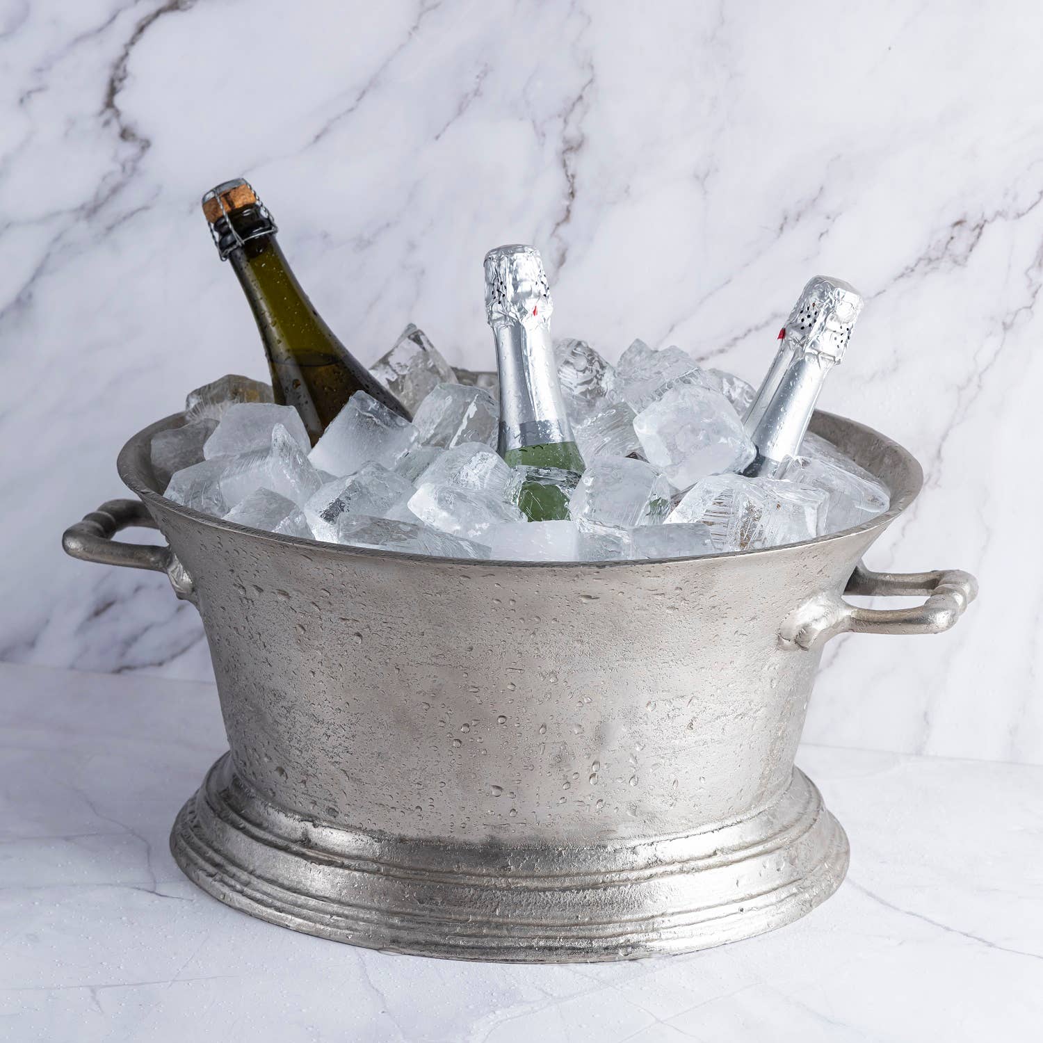 Cast Aluminum Ice Bucket/Wine Cooler - Raw Nickel