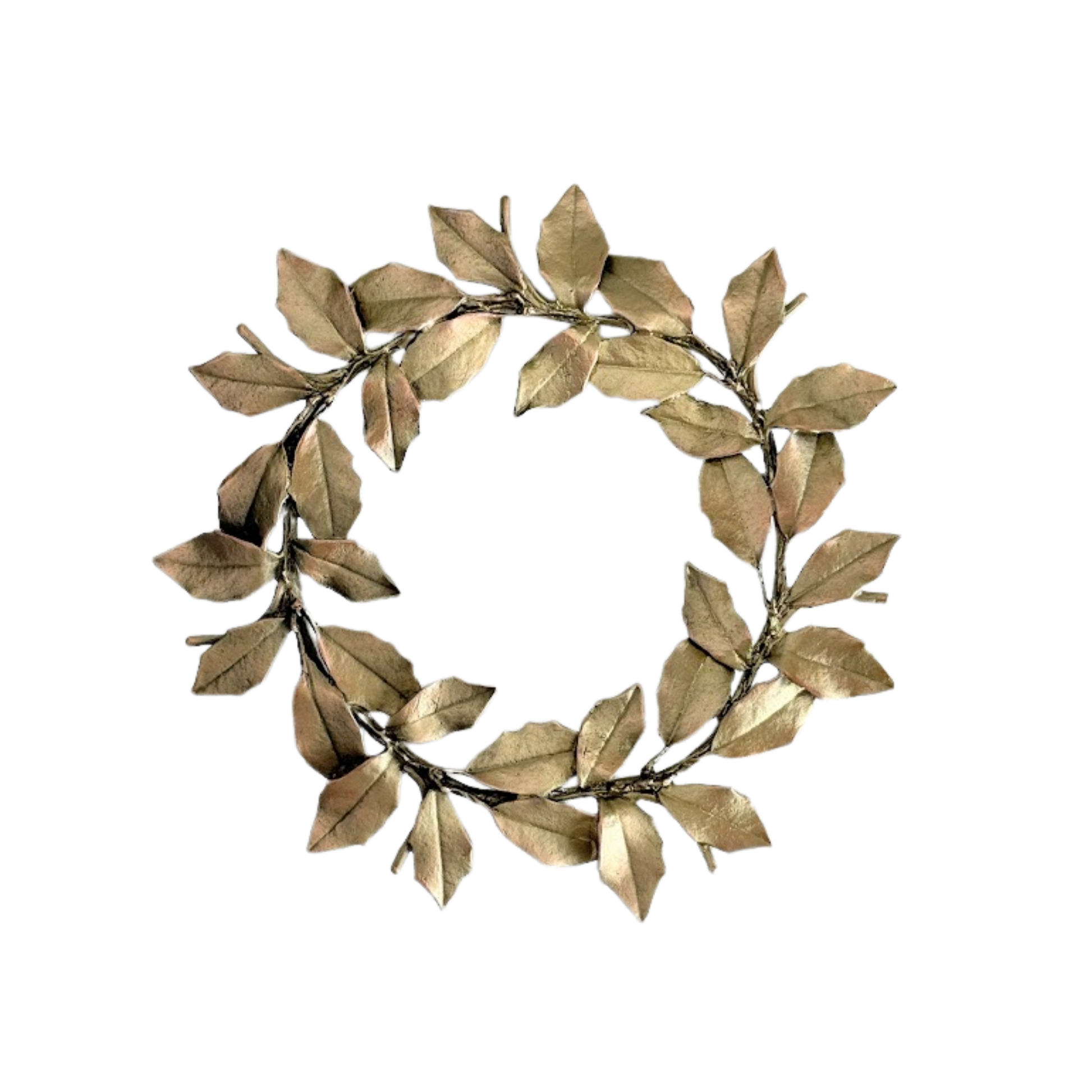 Holly wreath trivet cast in pewter with hand relived gold finish