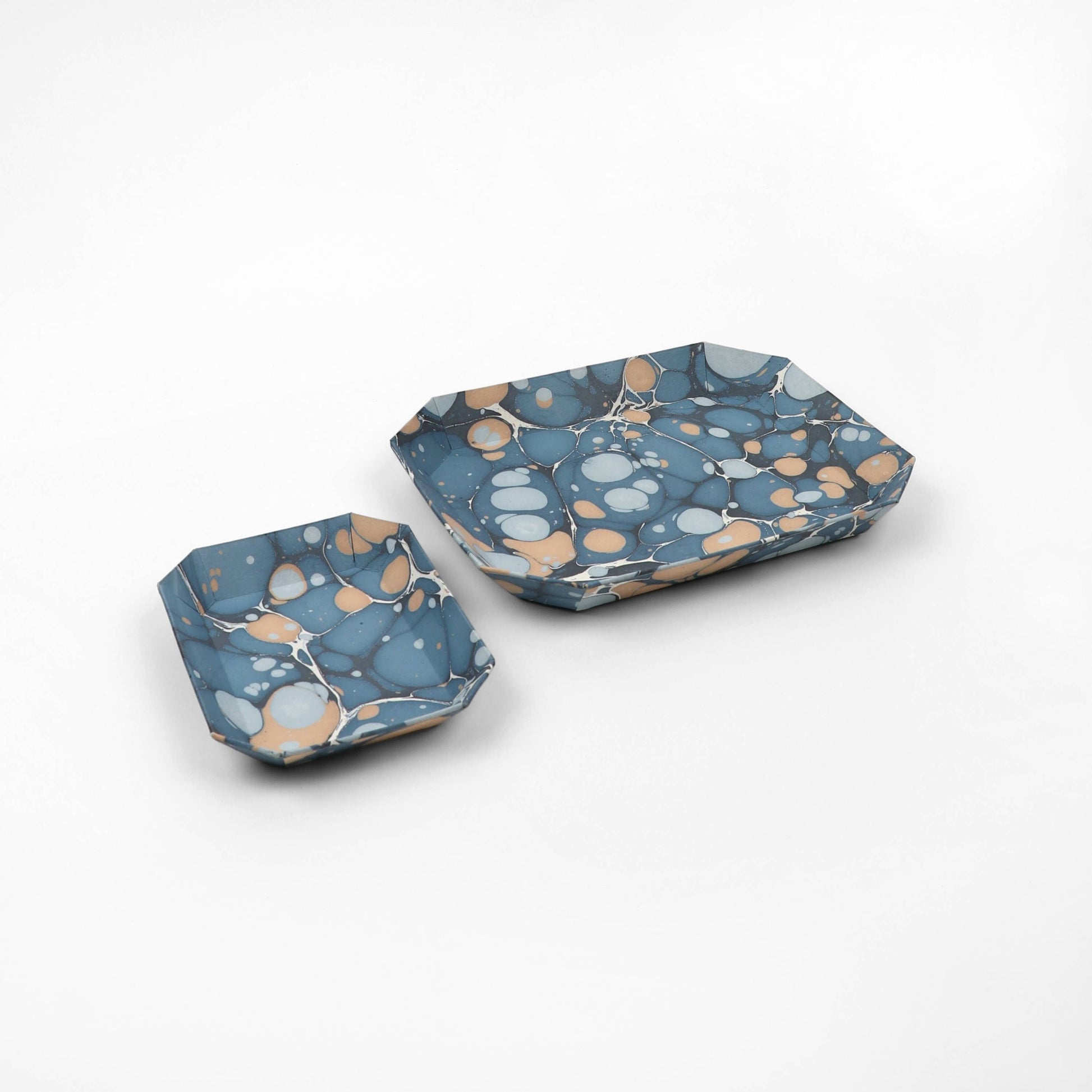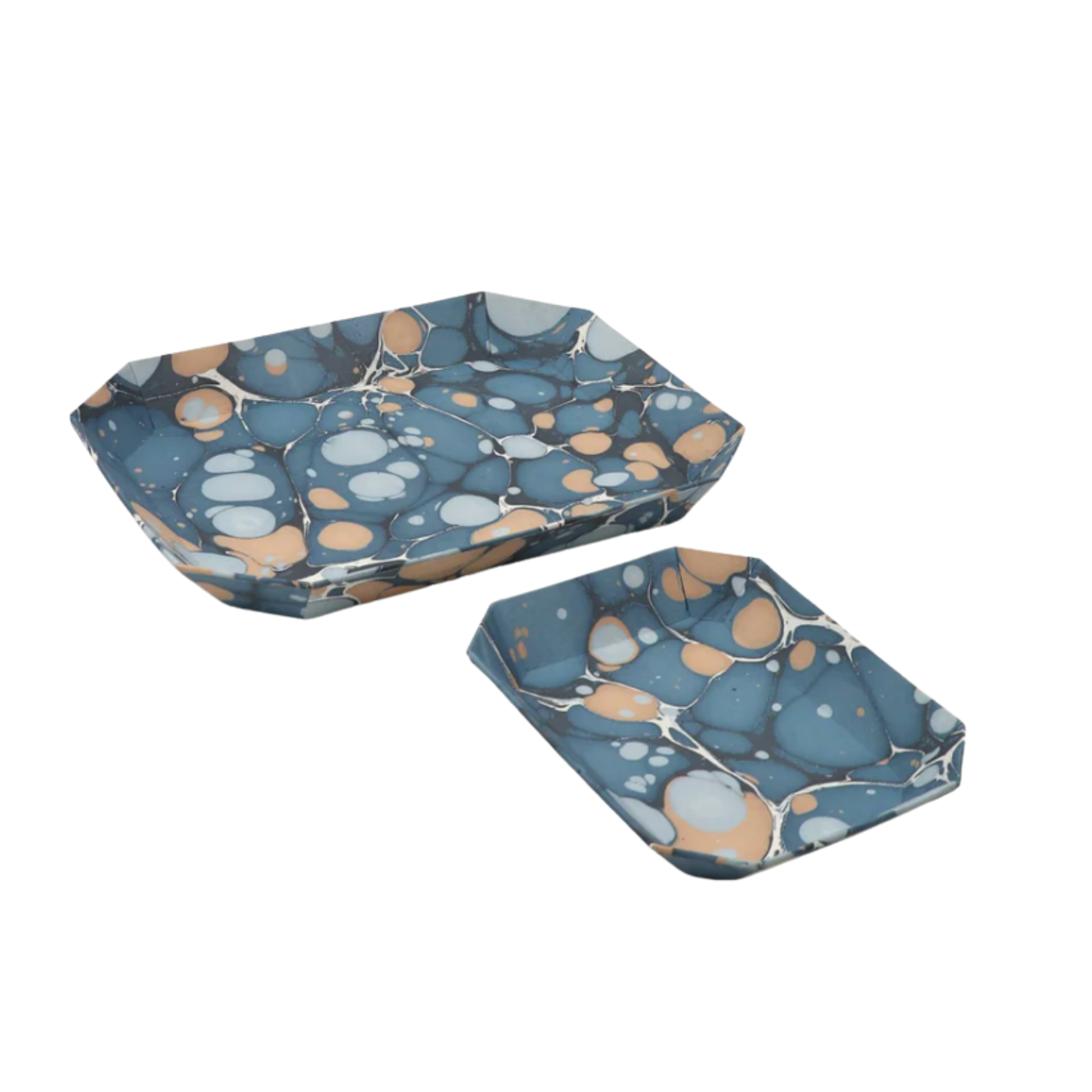 Marbled Octagonal Tray Set - Blue/Ochre Pebbles