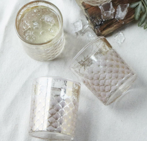 Set/4 cocktail glasses with 18K gold and pink naples pattern
