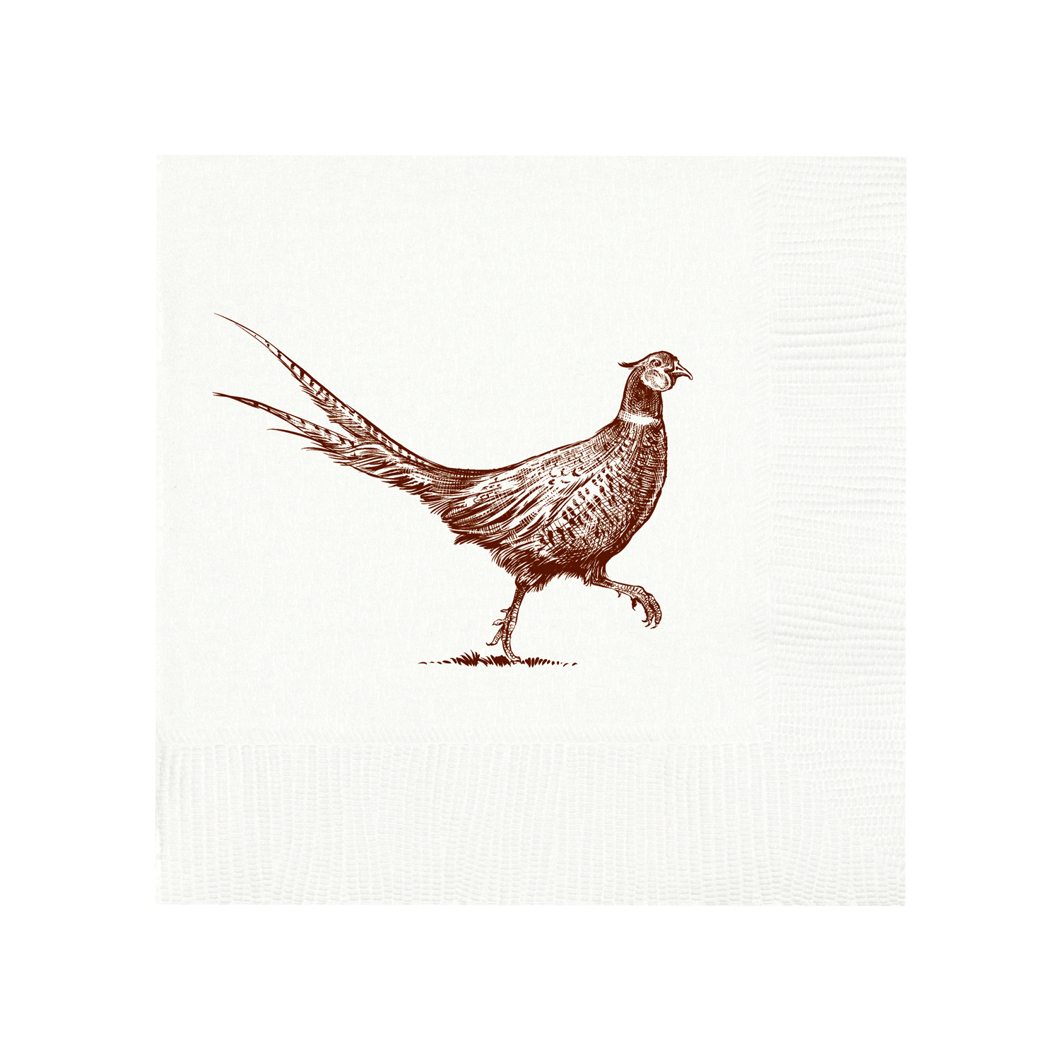 Pheasant Strut disposable beverage napkins. Include hand-drawn illustrations, created in New Orleans and printed in the USA on 3 ply paper napkins.