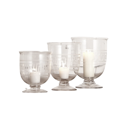Glass hurricanes with Greek key design